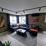 Leiligheten "Large And Central 2 Bedroom Apartment With Free Parking, Ev Recharging And A Private Garden" inkluderer en terrasse og et sitteområde med klimaanlegg for maksimal komfort. For økt bekvemmelighet er det et separat toalett og dusj tilgjengelig i denne boligen.