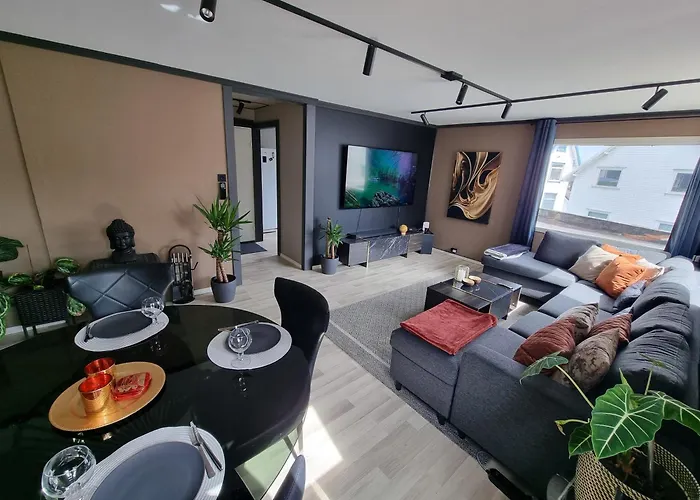 Med utsikt over hagen ligger den 85 m^2 store leiligheten "Large And Central 2 Bedroom Apartment With Free Parking, Ev Recharging And A Private Garden" i Stavanger, kun 20 minutters gange fra Det norske petroleumsmuseet. Wi-Fi er tilgjengelig for både forretnings- og fritidsaktiviteter.